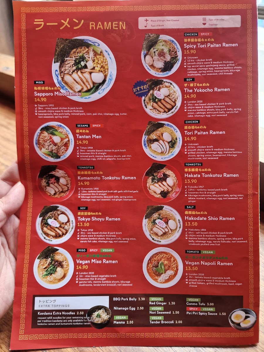 tonkotsu based pork broth | pork belly, takana mustard leaf, nitamago egg, beansprouts, red ginger, kikurage mushrooms, spring onion, nori
